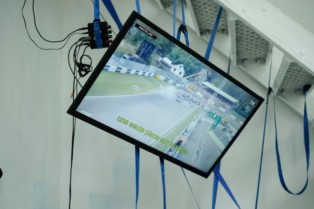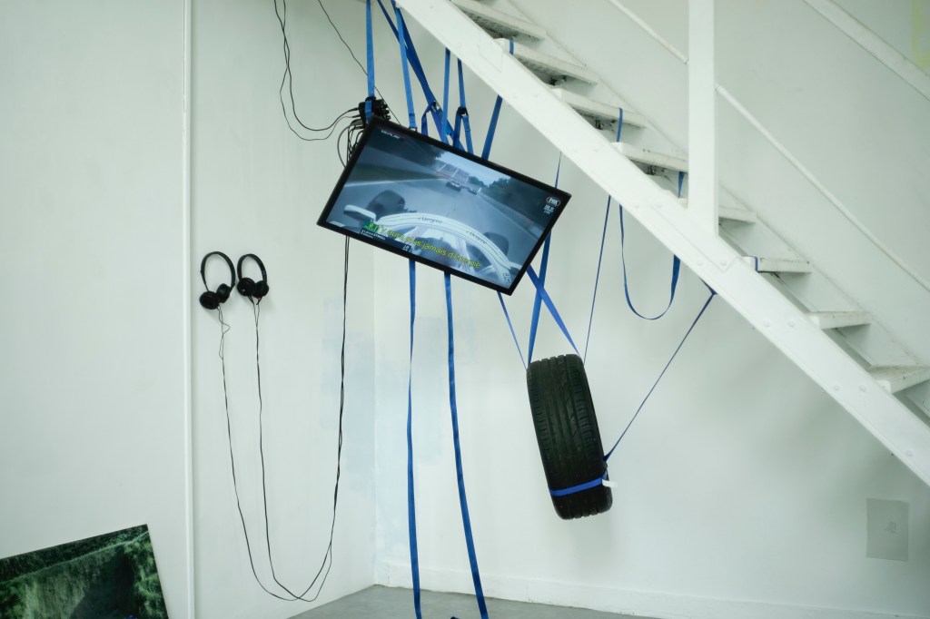 C’est un travail sur les machines, leurs ruptures dans le divertissement. Le constat c’est qu’une voiture perd toute humanité, les conducteurs perdent leur caractère vivant dans ces boites métalliques et électroniques. La tentative a donc été de rendre le sensible à la technologie. Les sons des moteurs ralentis semble rappeler un souffle. Le siège, les roues, jusqu’à la combinaison du pilote portent en eux des émotions passées. Retracer, retranscrire ces émotions en mots puis en phrases.