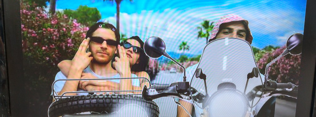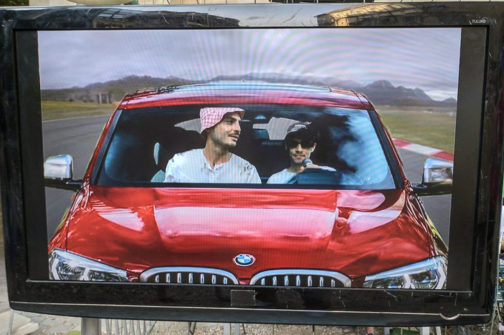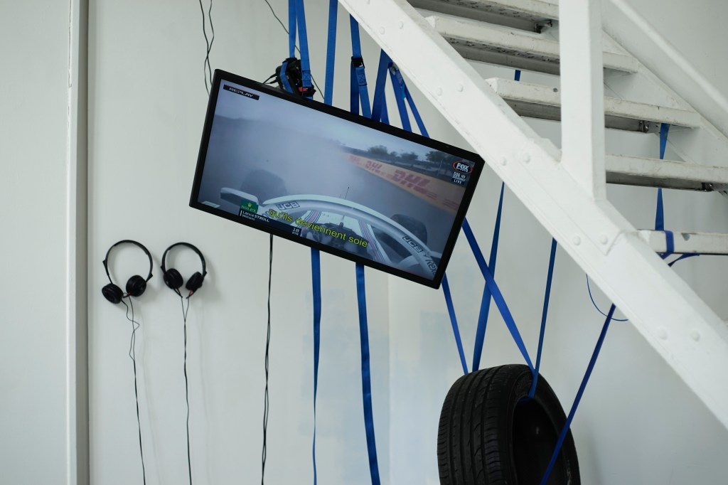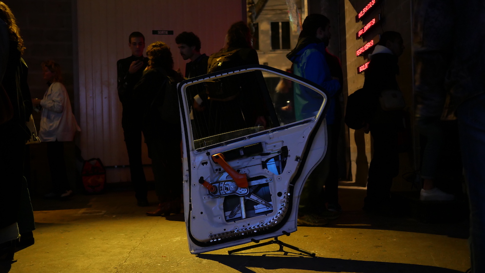 Une interaction à partir d’une grille rappelant la frustration de l’univers des circuits automobiles avec un écran qui a permis à A60 et Élise de présenter leurs musiques et leur univers dans un cadre en mouvement où l’on s’affranchit « du rapport de force que l’on retrouve dans un concert entre la scène et le public, on se protège de vous comme on vous protège de nous, comme des lions en cage »