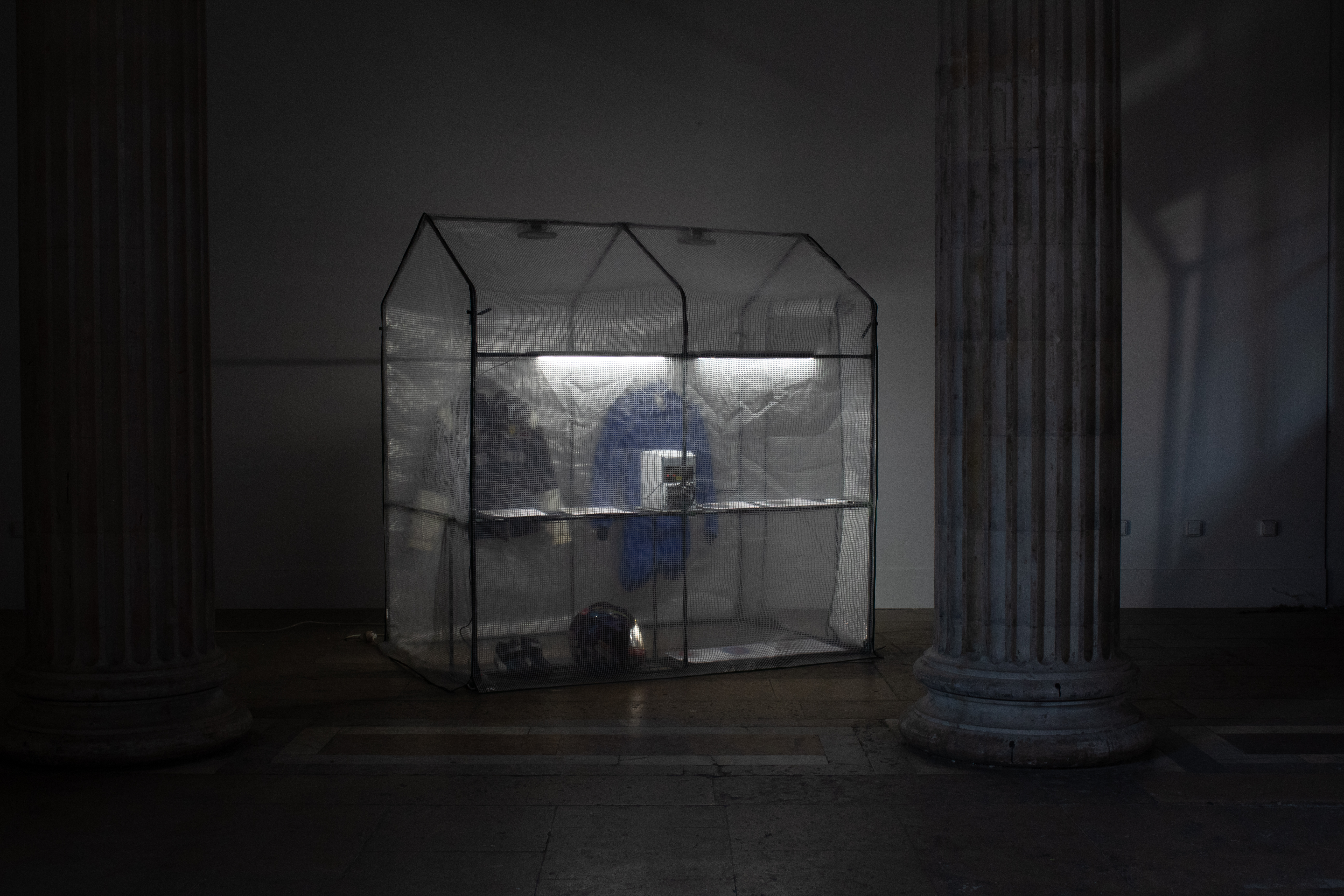 Temporaire ai-je-dit ? Ça dure une soirée, c’est presque une pièce de théâtre. Cette exposition, faite d’une multitude de tableaux vivants, porte en son coeur l’esprit du voyage. Des pièces mouvantes, inspirées par la circulation dans la ville et du dédoublement en touriste, en espion, en étudiant-e d’anatomie ancienne, ou encore en pèlerin …