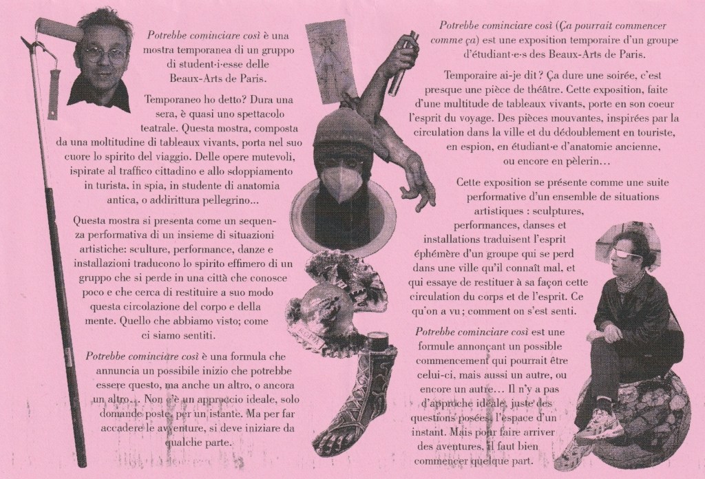 Protrebbe cominciare cosi (Ça pourrait commencer comme ça) est une exposition temporaire d’un groupe d’étudiant-e-s des Beaux-Arts de Paris.