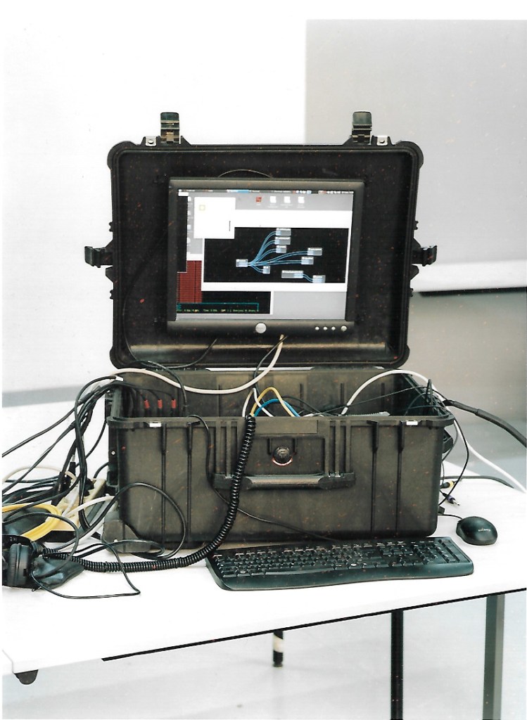A l’occasion d’un accrochage collectif en vue d’une collaboration avec des compositeurs et étudiants de l’IRCAM Pierlouis Clavel expérimente un concert avec différentes machines. Cette collaboration aboutira plus tard à une exposition au théâtre des expositions : Orbital Orchestra dans laquelle il présentera finalement une sculpture sonore.